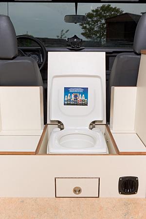 - Porta-Potti-Toilette in der Sitzgruppe untergebracht