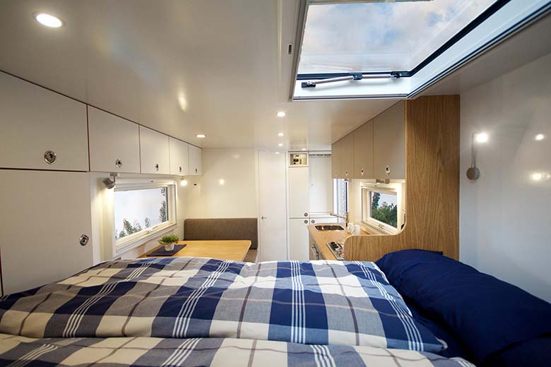 - Heck-Doppelbett 2000 x 1400 mm, unterlüftet