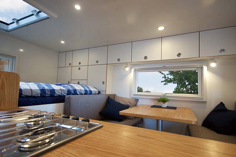- Länge 4600 mm, Breite 2370 mm, Höhe 2160 mm Innenmaße