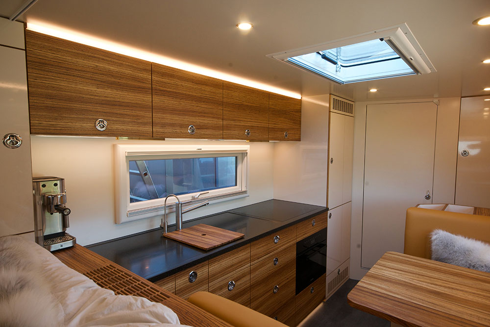 Möbelfronten in creme weiss Hochglanz und mit Zebrano-Echtholz-Furnier