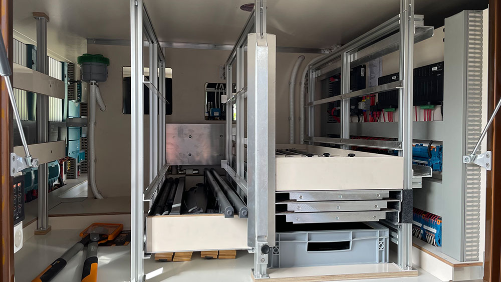 Unabhängige Stromversorgung des Aufbaues durch fünf Lithium-Ionen Batterien